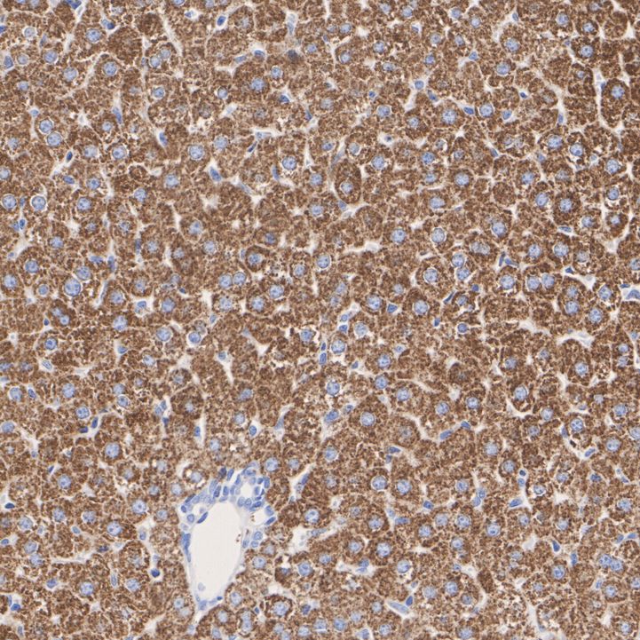 Immunohistochemical analysis of paraffin-embedded mouse liver tissue with Rabbit anti-BDH1 antibody (HA751532) at 1/1,000 dilution.