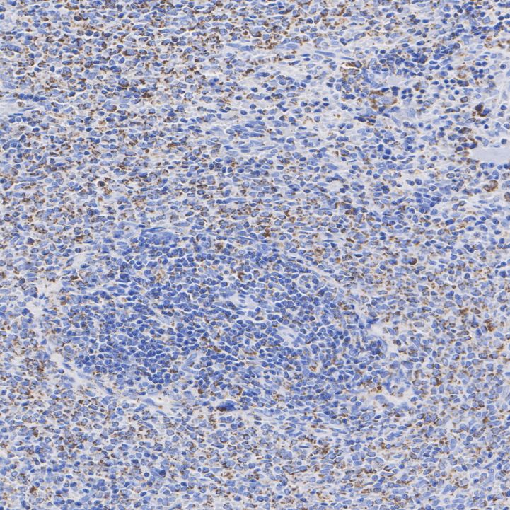 The section was pre-treated using heat mediated antigen retrieval with Tris-EDTA buffer (pH 9.0) for 20 minutes. The tissues were blocked in 1% BSA for 20 minutes at room temperature, washed with ddH2O and PBS, and then probed with the primary antibody (HA751532) at 1/200 dilution for 1 hour at room temperature. The detection was performed using an HRP conjugated compact polymer system. DAB was used as the chromogen. Tissues were counterstained with hematoxylin and mounted with DPX.