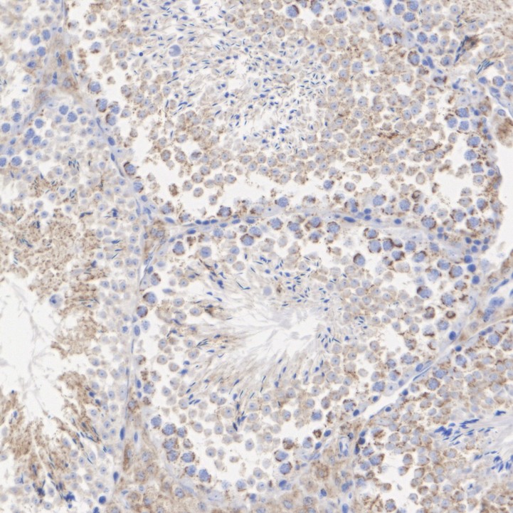 Immunohistochemical analysis of paraffin-embedded mouse testis tissue with Rabbit anti-BDH1 antibody (HA751532) at 1/1,000 dilution.