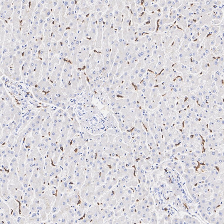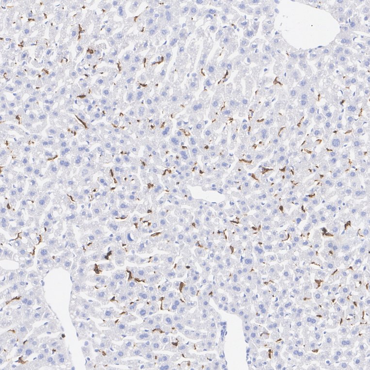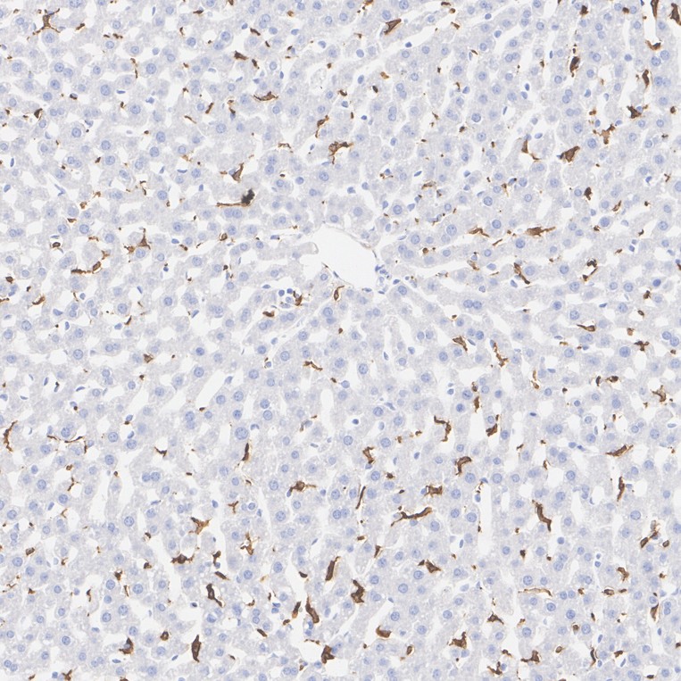 Immunohistochemical analysis of paraffin-embedded mouse liver tissue with Rabbit anti-CD163 antibody (HA751688) at 1/1,000 dilution.