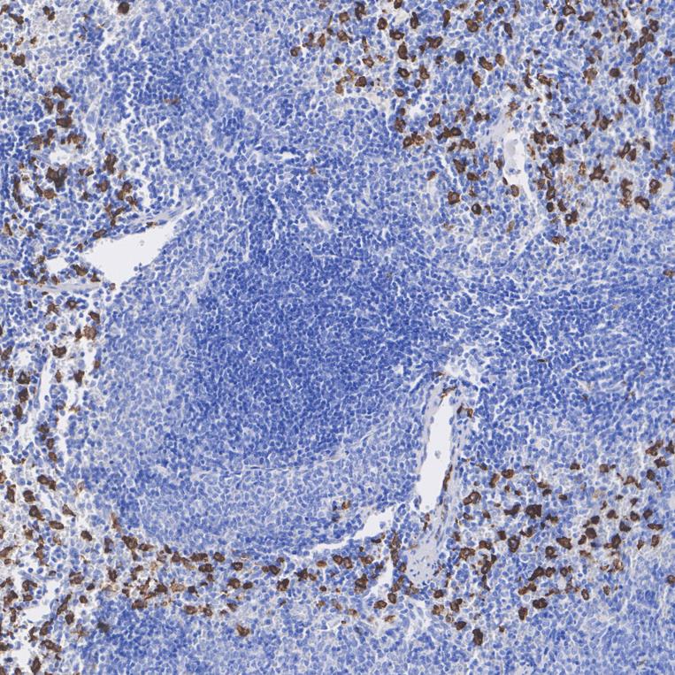 Immunohistochemical analysis of paraffin-embedded mouse spleen tissue with Rabbit anti-CD163 antibody (HA751688) at 1/1,000 dilution.