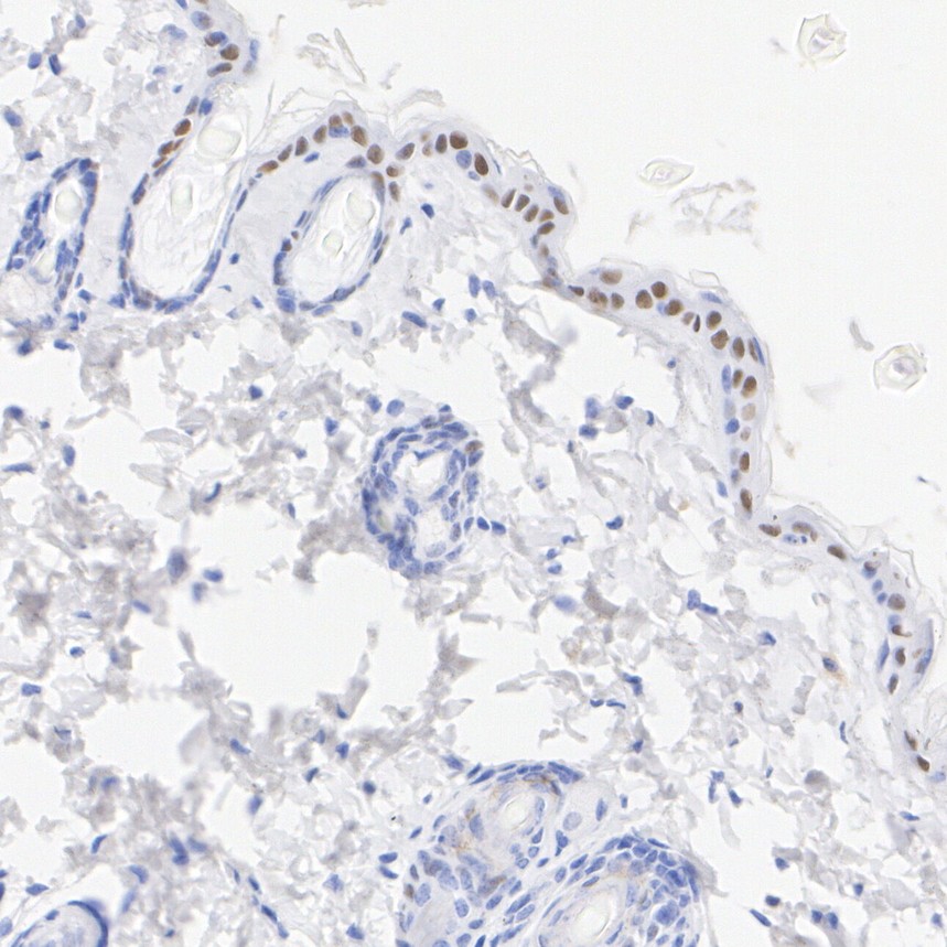 Immunohistochemical analysis of paraffin-embedded mouse skin tissue with Rabbit anti-Oct6 antibody (HA751761) at 1/4,000 dilution.