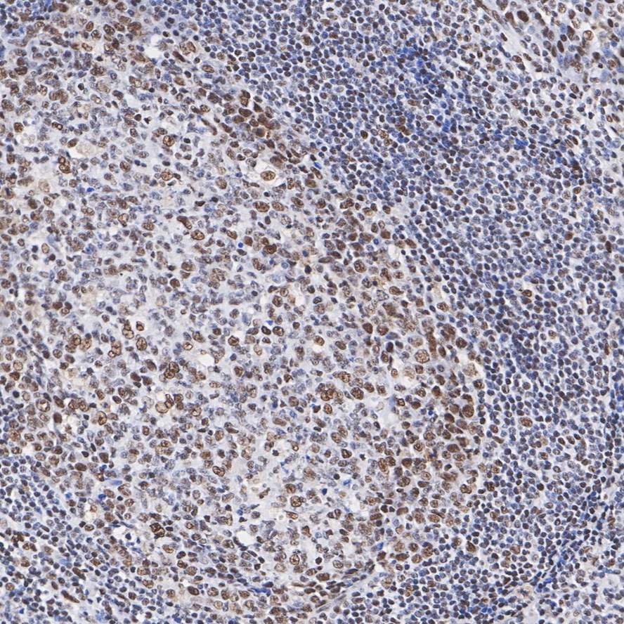 Immunohistochemical analysis of paraffin-embedded human tonsil tissue with Rabbit anti-HDAC2 antibody (HA750134) at 1/6,000 dilution.