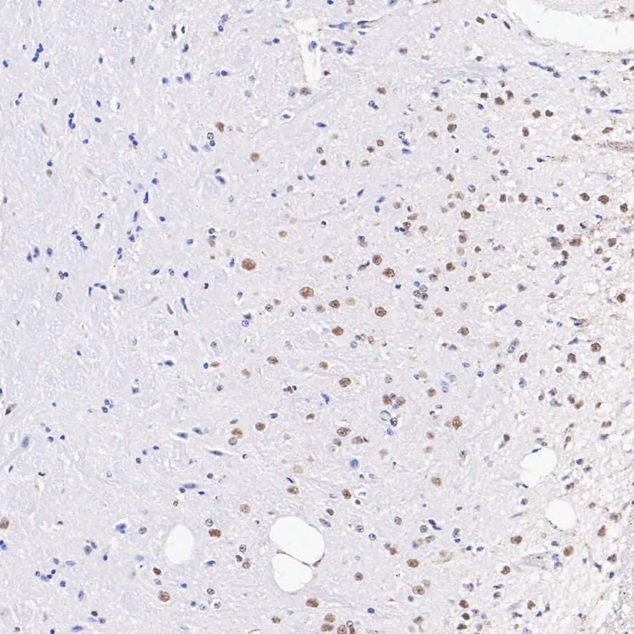 The section was pre-treated using heat mediated antigen retrieval with sodium citrate buffer (pH 6.0) (high pressure) for 2 minutes. The tissues were blocked in 1% BSA for 20 minutes at room temperature, washed with ddH2O and PBS, and then probed with the primary antibody (HA750134) at 1/6,000 dilution for 1 hour at room temperature. The detection was performed using an HRP conjugated compact polymer system. DAB was used as the chromogen. Tissues were counterstained with hematoxylin and mounted with DPX.