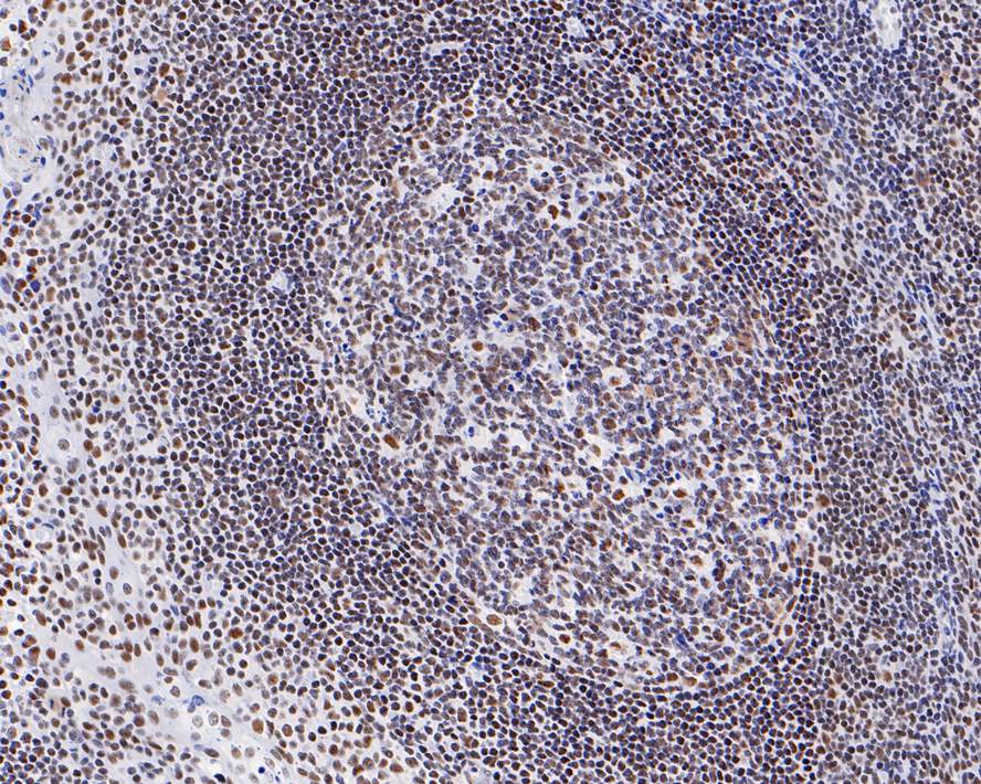 The section was pre-treated using heat mediated antigen retrieval with sodium citrate buffer (pH 6.0) (high pressure) for 2 minutes. The tissues were blocked in 1% BSA for 20 minutes at room temperature, washed with ddH2O and PBS, and then probed with the primary antibody (HA750221) at 1/1,000 dilution for 1 hour at room temperature. The detection was performed using an HRP conjugated compact polymer system. DAB was used as the chromogen. Tissues were counterstained with hematoxylin and mounted with DPX.