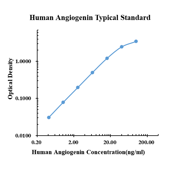 血管生成素(ANG)是一种分泌蛋白,属于胰腺核糖核酸酶家族。它最初是基于其在人腺癌细胞系 HT-29 生长条件下的无血清培养基中启动鸡胚绒毛尿囊膜血管化的能力而纯化的。许多其他肿瘤以及正常细胞系也分泌血管生成素。血管生成素存在于正常人血浆中。