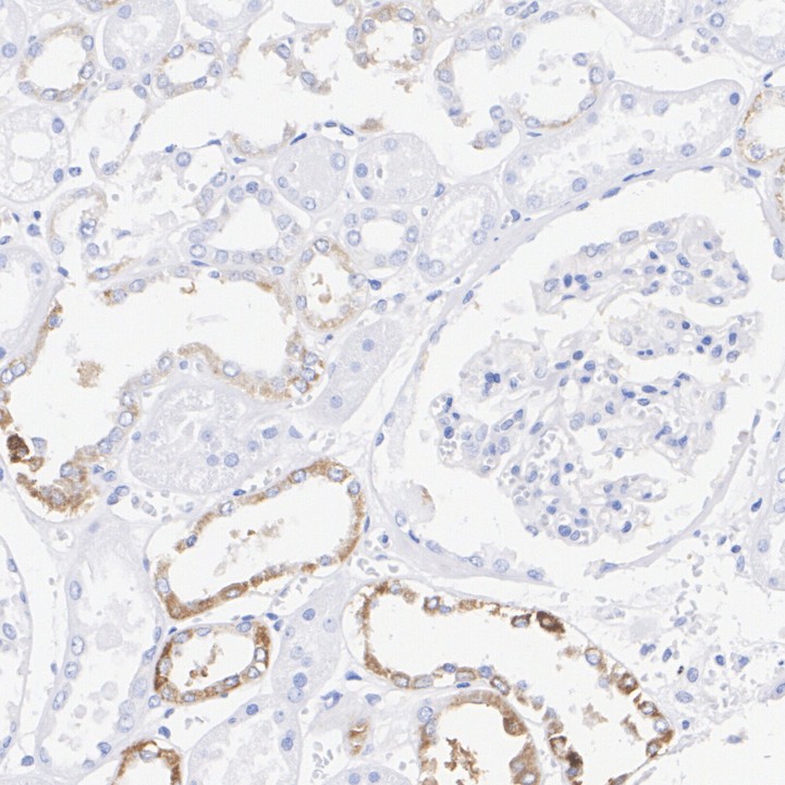 Immunohistochemical analysis of paraffin-embedded human kidney tissue with Rabbit anti-IKB alpha antibody (HA750068) at 1/1,000 dilution.