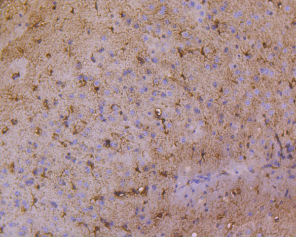 Immunohistochemical analysis of paraffin-embedded mouse brain tissue with Rabbit anti-IKB alpha antibody (HA750068) at 1/200 dilution.