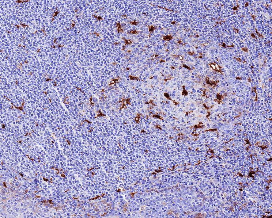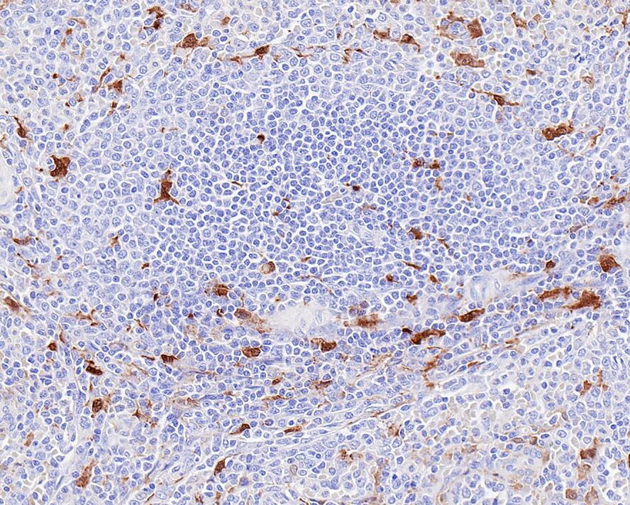 Immunohistochemical analysis of paraffin-embedded human spleen tissue with Rabbit anti-IL-18 antibody (HA721536) at 1/1,000 dilution.