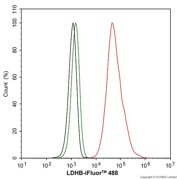 Primary antibody: HA724336 (1/1,000) (Red) compared with Rabbit IgG Isotype Control (HA722127, Green), 15 minutes at room temperature.