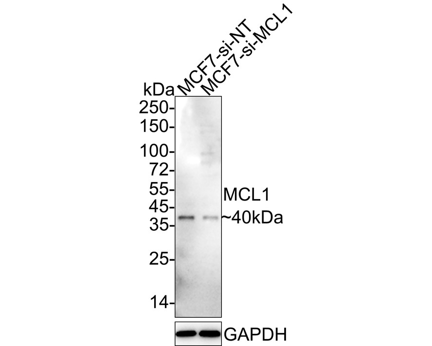 Lane 1: MCF7-si NT cell lysate Lane 2: MCF7-si MCL1 cell lysate