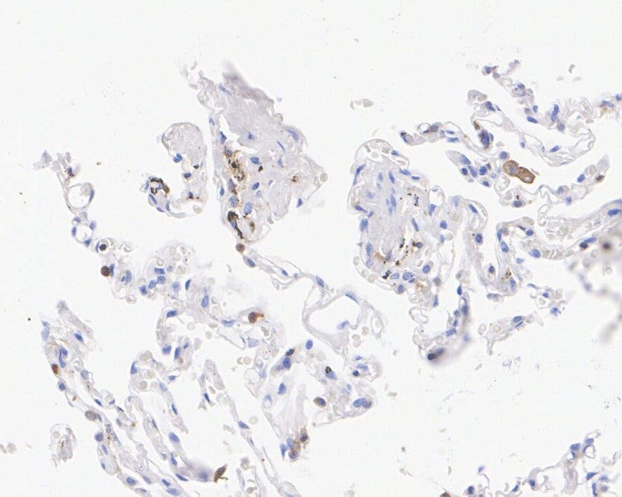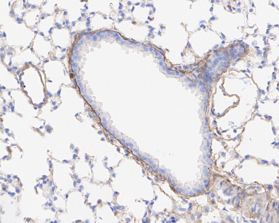 Immunohistochemical analysis of paraffin-embedded mouse lung tissue with Rabbit anti-MMP-14 antibody (HA750108) at 1/10,000 dilution.