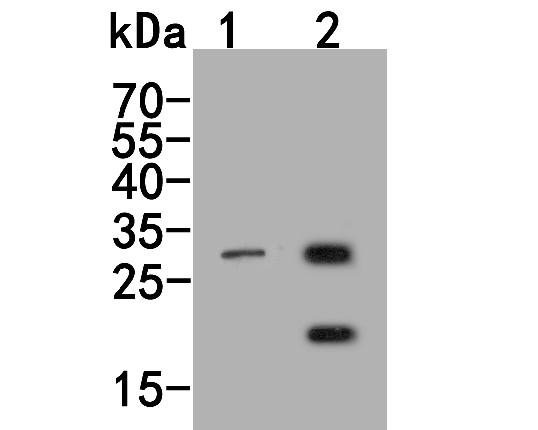 Western blot analysis of MMP7 on different lysates. Proteins were transferred to a PVDF membrane and blocked with 5% NFDM/TBST for 1 hour at room temperature. The primary antibody (HA500305, 1/1,000) was used in 5% NFDM/TBST at room temperature for 2 hours. Goat Anti-Rabbit IgG - HRP Secondary Antibody (HA1001) at 1:200,000 dilution was used for 1 hour at room temperature.
