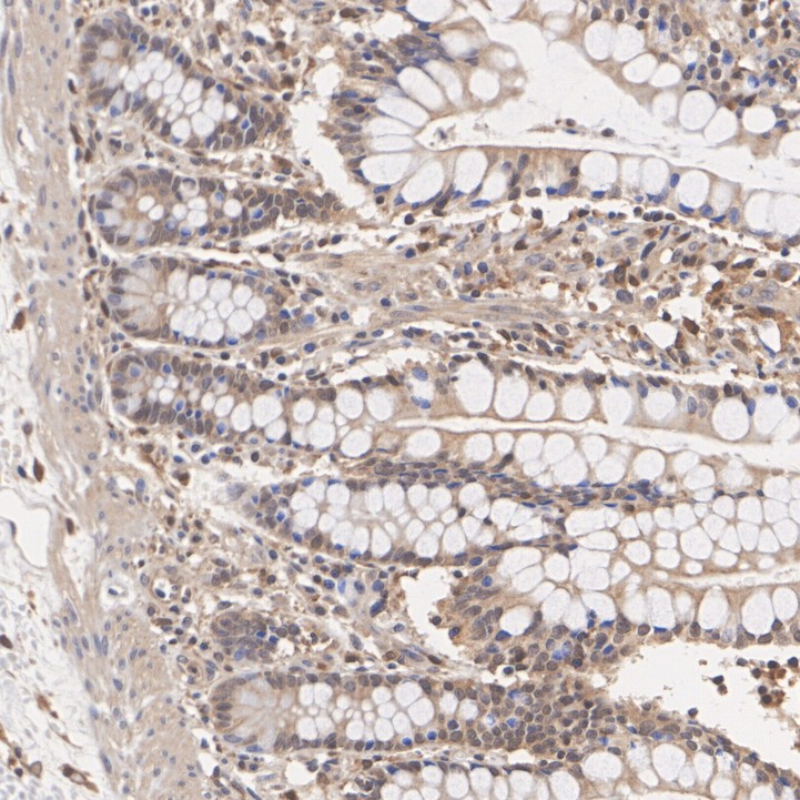 Immunohistochemical analysis of paraffin-embedded rat small intestine tissue with Rabbit anti-MOB1 antibody (HA723919) at 1/1,000 dilution.