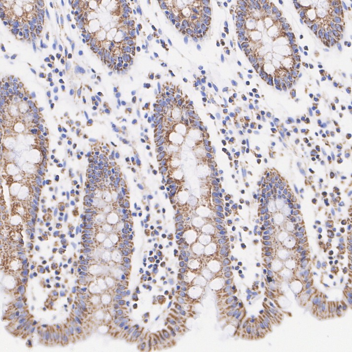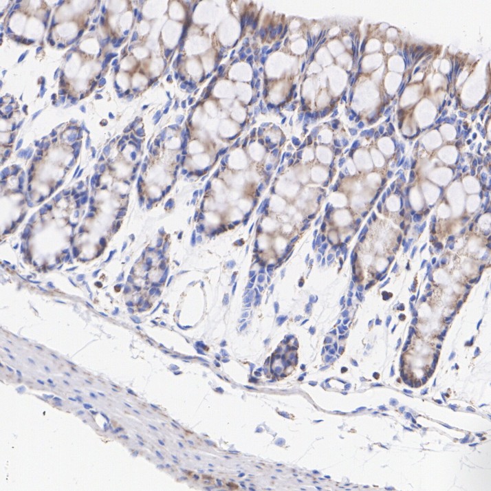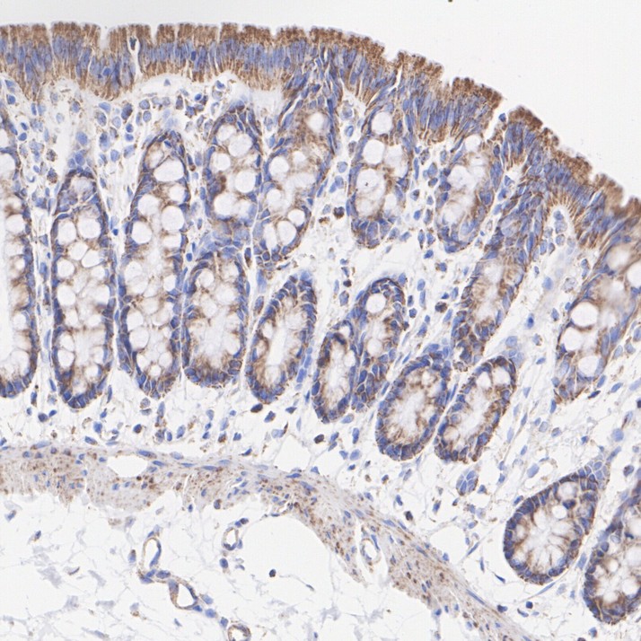 Immunohistochemical analysis of paraffin-embedded mouse colon tissue with Rabbit anti-MTCO1 antibody (HA751171) at 1/10,000 dilution.
