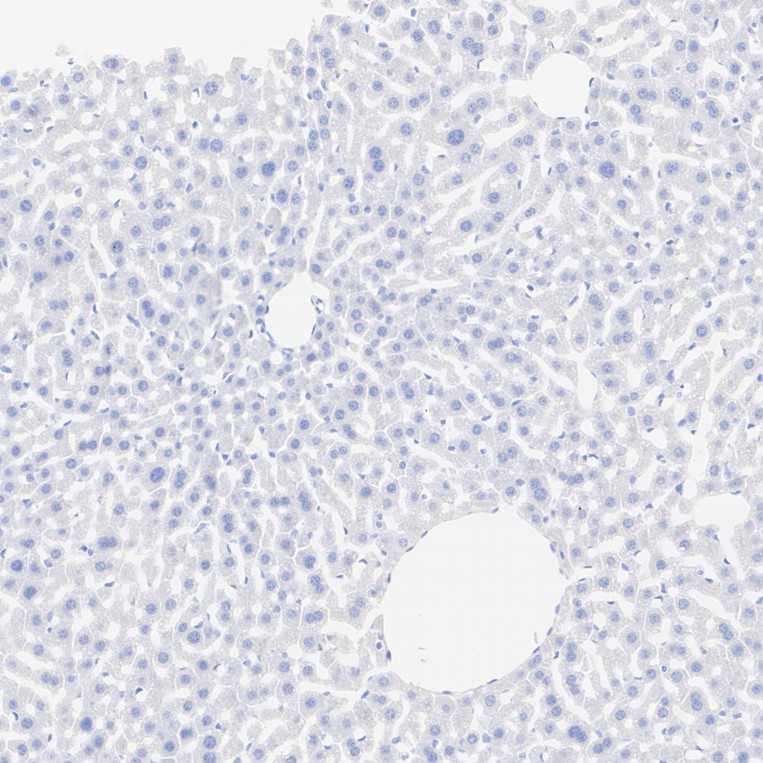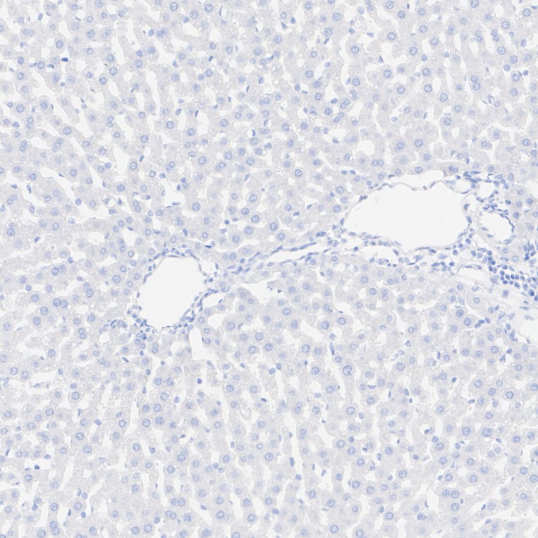 Lane 2: Mouse liver tissue lysate (negative) (20 µg/Lane)