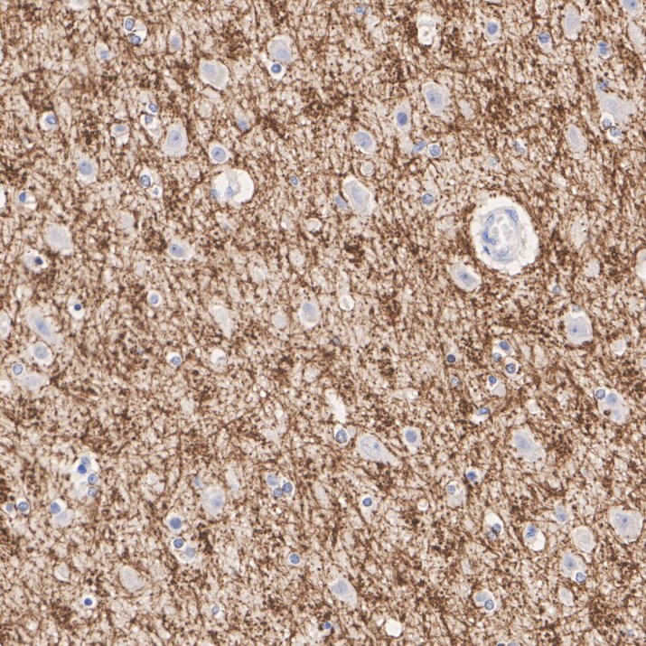 Immunohistochemical analysis of paraffin-embedded human brain tissue with Rat anti-Myelin PLP antibody (HA601407) at 1/1,000 dilution.