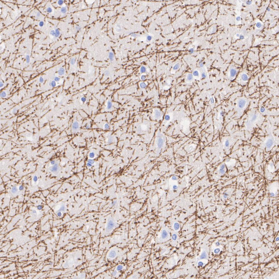 Lane 1: Mouse brain tissue lysate (no heat) (20 µg/Lane)