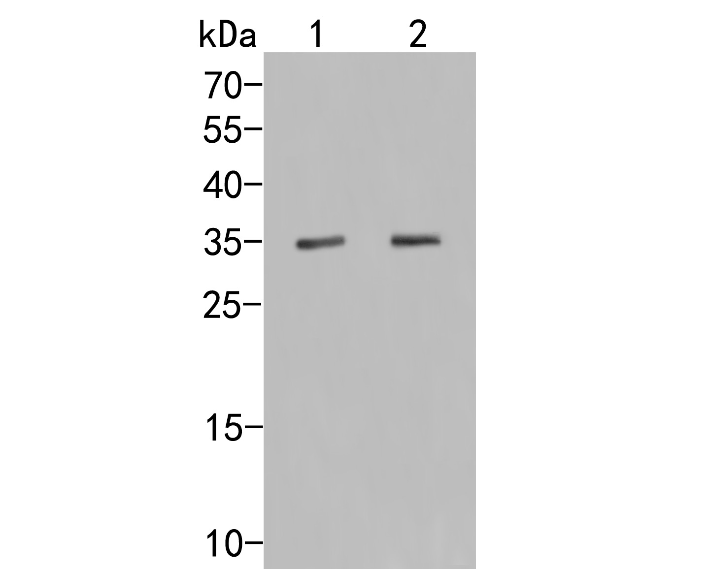 Predicted band size: 35 kDa