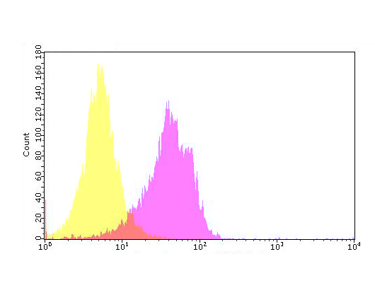 Flow cytometric analysis of POLR2A was done on Siha cells. The cells were fixed, permeabilized and stained with the primary antibody (HA500334, 1/100) (purple). After incubation of the primary antibody at room temperature for an hour, the cells were stained with a Alexa Fluor 488-conjugated goat anti-rabbit IgG Secondary antibody at 1/500 dilution for 30 minutes.Unlabelled sample was used as a control (cells without incubation with primary antibody; yellow).