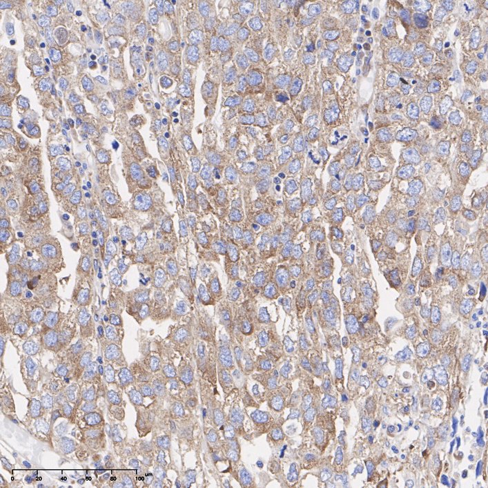 The section was pre-treated using heat mediated antigen retrieval with Tris-EDTA buffer (pH 9.0) for 20 minutes. The tissues were blocked in 1% BSA for 20 minutes at room temperature, washed with ddH2O and PBS, and then probed with the primary antibody (ET1602-24) at 1/10,000 dilution for 1 hour at room temperature. The detection was performed using an HRP conjugated compact polymer system. DAB was used as the chromogen. Tissues were counterstained with hematoxylin and mounted with DPX.