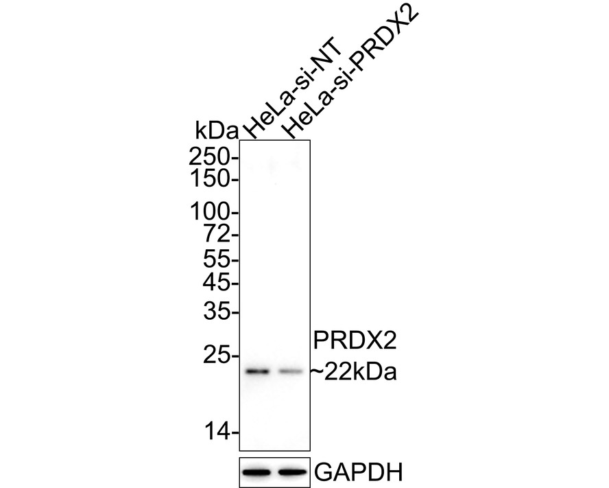 Lane 2: HeLa-si Peroxiredoxin 2 cell lysate