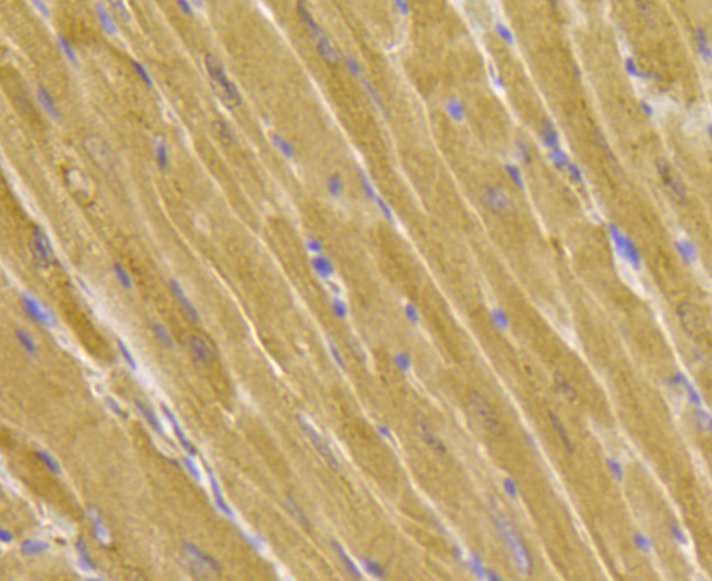 Lane 3: Mouse heart tissue lysate (20 µg/Lane)