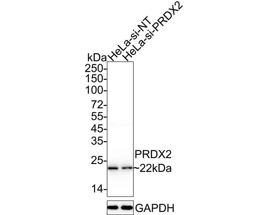 Lane 2: HeLa-si Peroxiredoxin 2 cell lysate