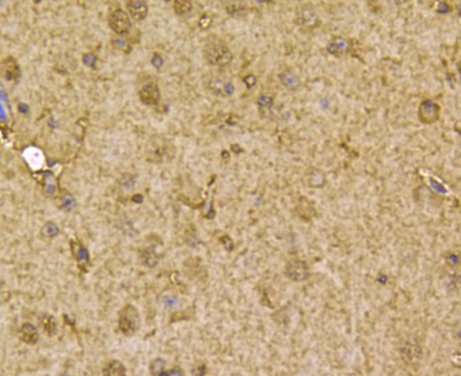 Immunohistochemical analysis of paraffin-embedded mouse brain tissue using anti-Peroxiredoxin 2/PRDX2 antibody. Counter stained with hematoxylin.