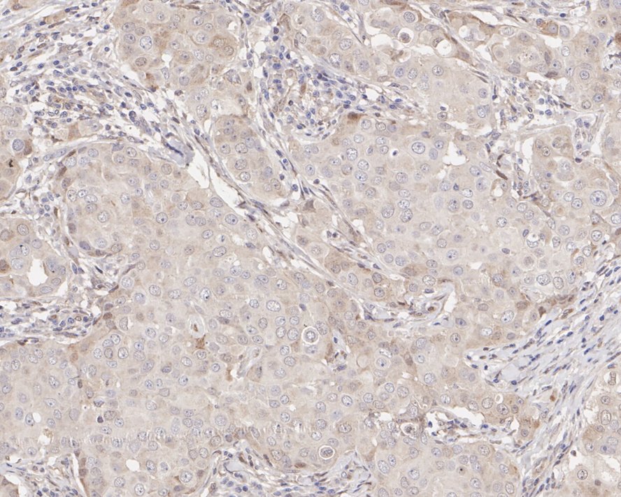 The section was pre-treated using heat mediated antigen retrieval with sodium citrate buffer (pH 6.0) (high pressure) for 2 minutes. The tissues were blocked in 1% BSA for 20 minutes at room temperature, washed with ddH2O and PBS, and then probed with the primary antibody (HA750132) at 1/1,000 dilution for 1 hour at room temperature. The detection was performed using an HRP conjugated compact polymer system. DAB was used as the chromogen. Tissues were counterstained with hematoxylin and mounted with DPX. -