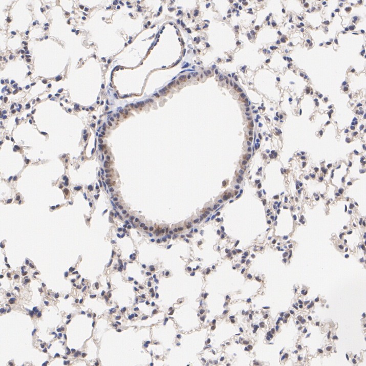 Immunohistochemical analysis of paraffin-embedded mouse lung tissue with Rabbit anti-Phospho-AKT (S473) antibody (HA750132) at 1/1,000 dilution.