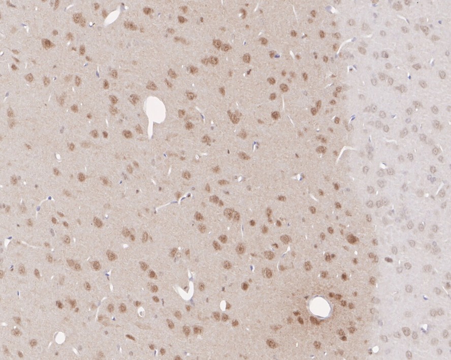 Immunohistochemical analysis of paraffin-embedded rat brain tissue with Rabbit anti-Phospho-AKT (S473) antibody (HA750132) at 1/1,000 dilution.