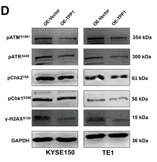 Cells were fixed in 4% paraformaldehyde for 20 minutes at room temperature, permeabilized with 0.1% Triton X-100 in PBS for 5 minutes at room temperature, then blocked with 1% BSA in 10% negative goat serum for 1 hour at room temperature. Cells were then incubated with Rabbit anti-Phospho-Chk1 (S296) antibody (ET1611-76) at 1/100 dilution in 1% BSA in PBST overnight at 4 ℃. Goat Anti-Rabbit IgG H&L (iFluor™ 488, HA1121) was used as the secondary antibody at 1/1,000 dilution. PBS instead of the primary antibody was used as the secondary antibody only control. Nuclear DNA was labelled in blue with DAPI.
