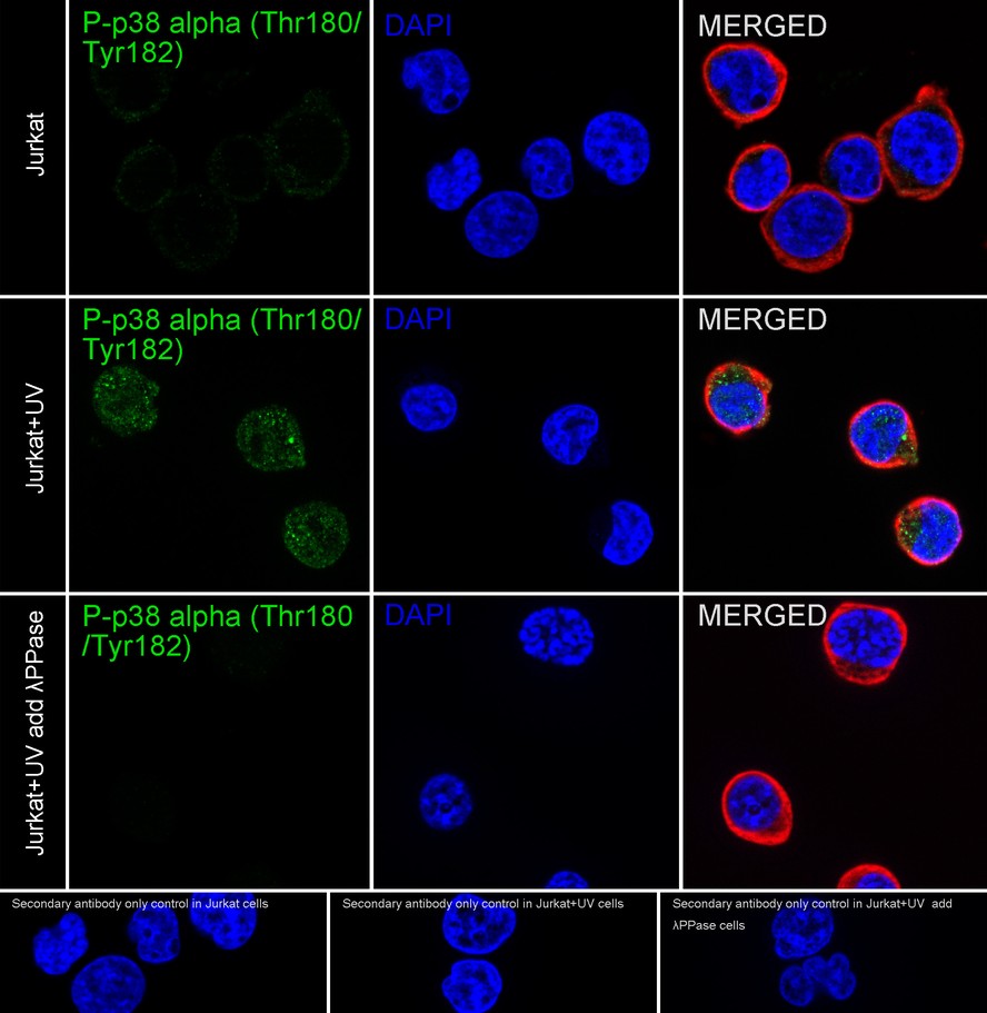 Phospho-p38 alpha (T180 + Y182) Recombinant Rabbit Monoclonal Antibody [PSH06-35] - BSA and Azide free