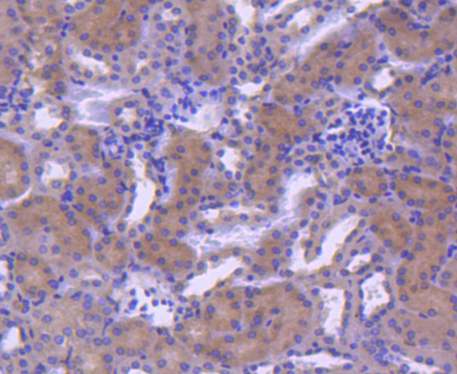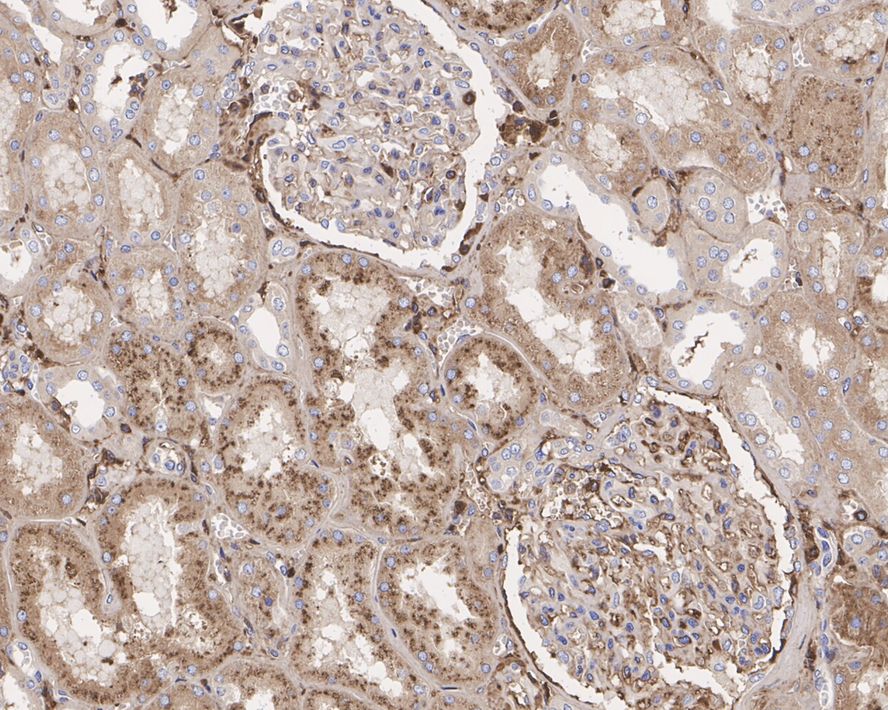 Immunohistochemical analysis of paraffin-embedded human kidney tissue with Rabbit anti-RAB7 antibody (HA750279) at 1/1,000 dilution.