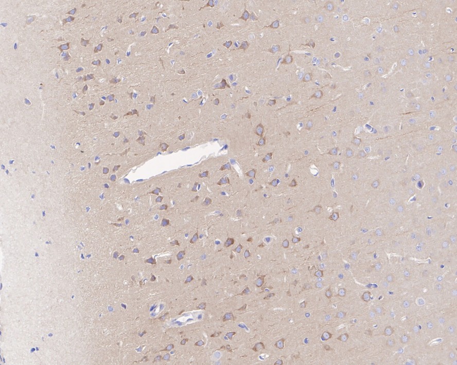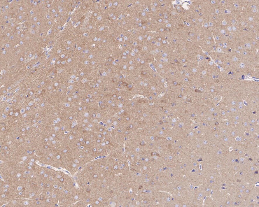 Immunohistochemical analysis of paraffin-embedded mouse brain tissue with Rabbit anti-ROCK2 antibody (HA722176) at 1/1,000 dilution.