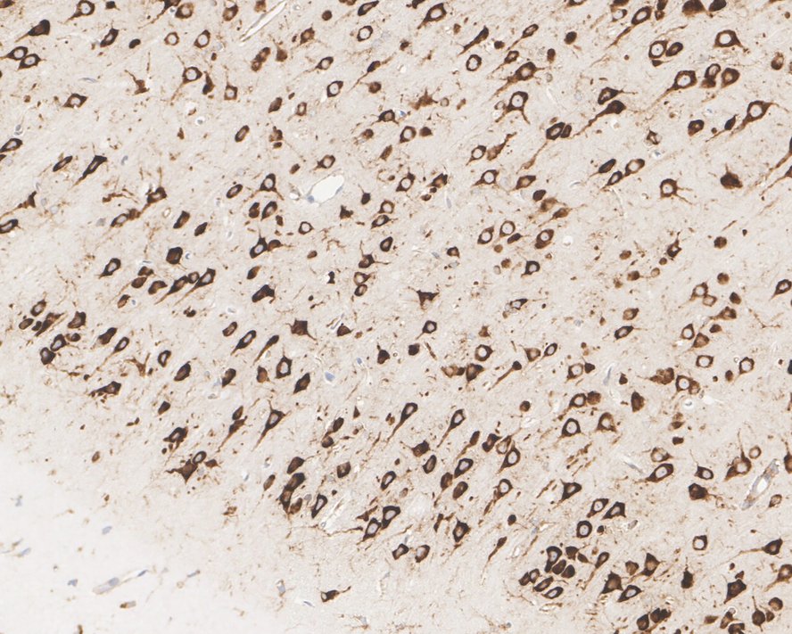 Immunohistochemical analysis of paraffin-embedded rat brain tissue with Mouse anti-RPS6 antibody (HA610092) at 1/2,000 dilution.