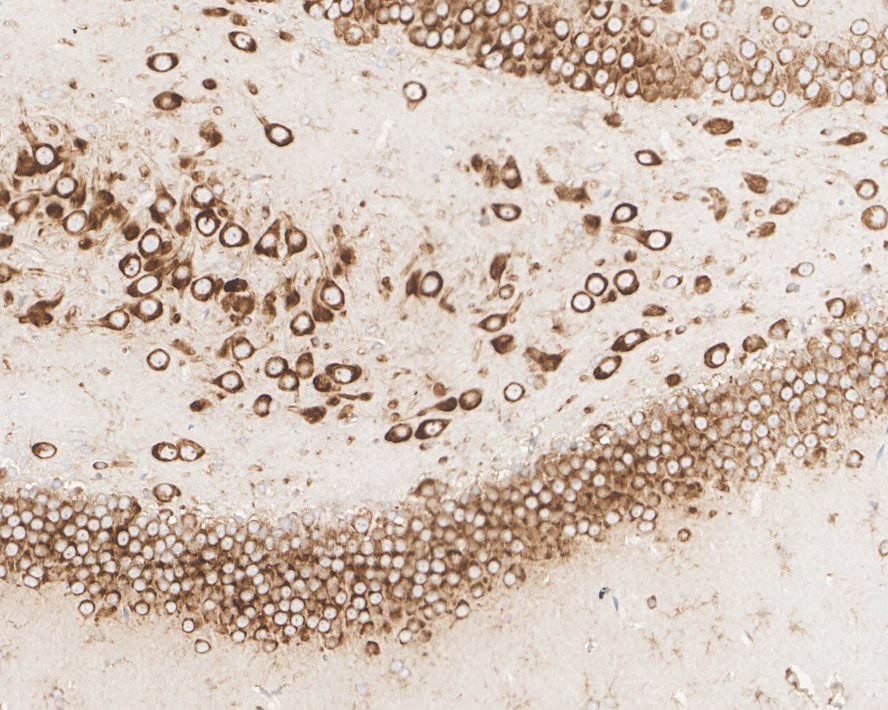 Immunohistochemical analysis of paraffin-embedded rat hippocampus tissue with Mouse anti-RPS6 antibody (HA610092) at 1/2,000 dilution.