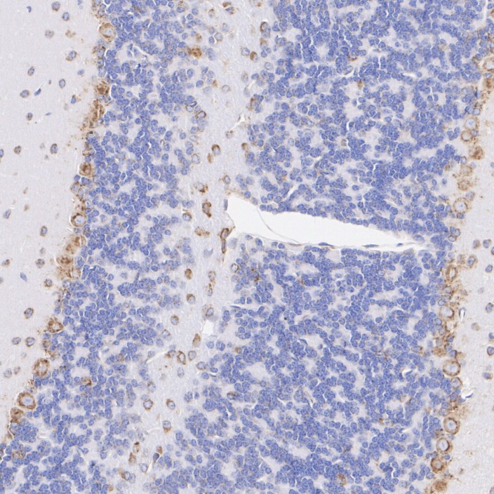 Immunohistochemical analysis of paraffin-embedded mouse cerebellum tissue with Rabbit anti-SEC61B antibody (HA751295) at 1/1,000 dilution.