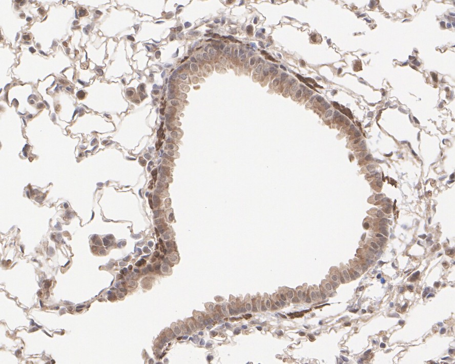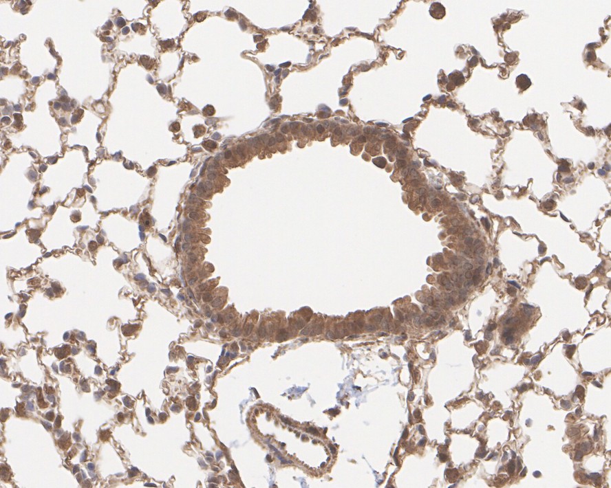 Immunohistochemical analysis of paraffin-embedded mouse lung tissue with Rabbit anti-SREBP1 antibody (HA500210) at 1/1,000 dilution.