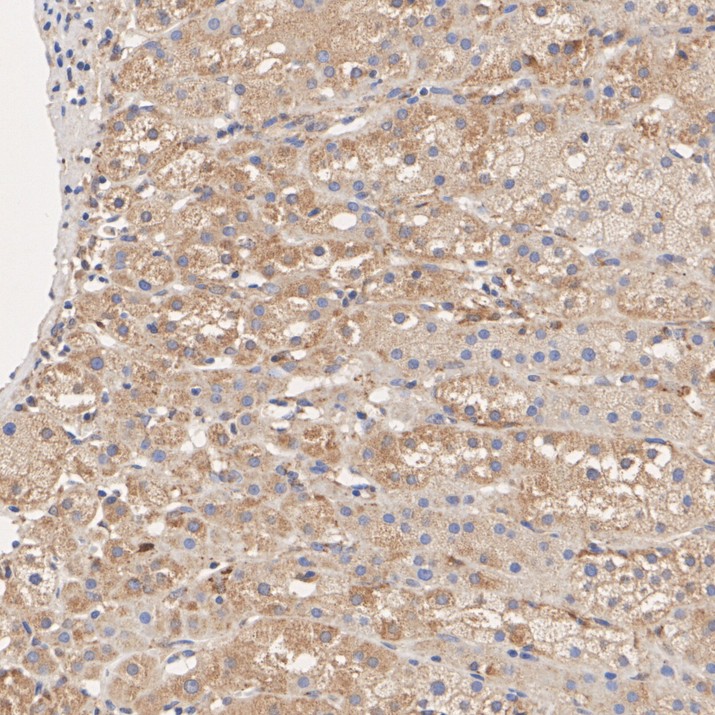 Immunohistochemical analysis of paraffin-embedded human adrenal gland tissue with Rabbit anti-SREBP1 antibody (HA750968) at 1/50 dilution.
