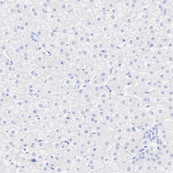 Immunohistochemical analysis of paraffin-embedded human liver tissue (negative) with Rabbit anti-TdT antibody (HA721211) at 1/50 dilution.