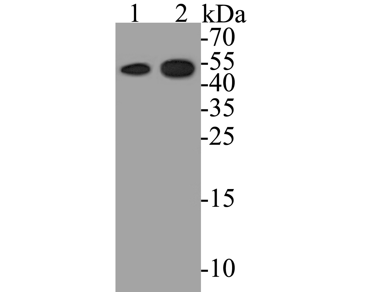 Western blot analysis of ZAC on different lysates. Proteins were transferred to a PVDF membrane and blocked with 5% BSA in PBS for 1 hour at room temperature. The primary antibody (ER1901-48, 1/500) was used in 5% BSA at room temperature for 2 hours. Goat Anti-Rabbit IgG - HRP Secondary Antibody (HA1001) at 1:5,000 dilution was used for 1 hour at room temperature.