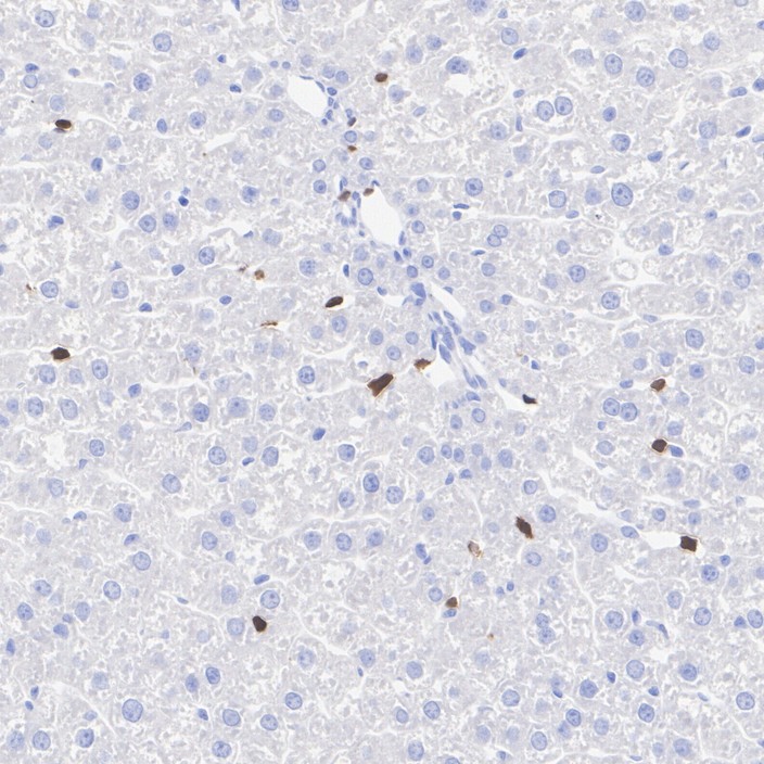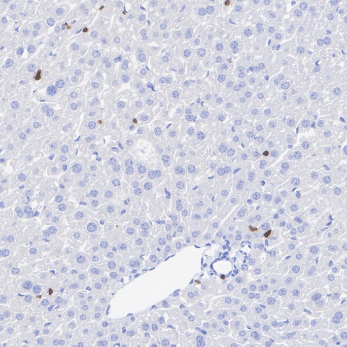 Immunohistochemical analysis of paraffin-embedded mouse liver tissue (negative) with Rabbit anti-ZAP70 antibody (HA723344) at 1/1,000 dilution.