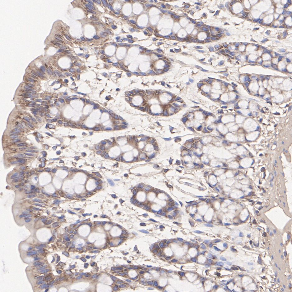 Immunohistochemical analysis of paraffin-embedded rat colon tissue with Rabbit anti-alpha Actinin antibody (ER1803-60) at 1/1,000 dilution.