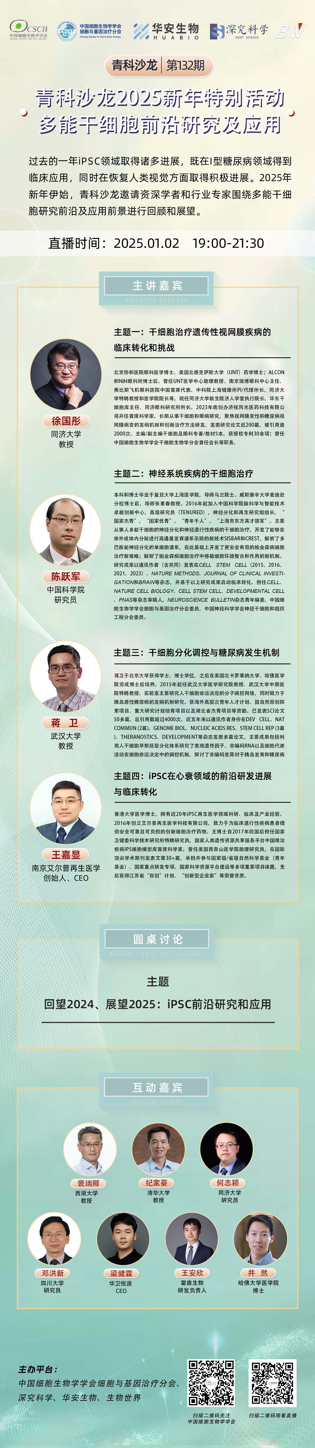 青科沙龙第132期暨2025新年特别活动:多能干细胞前沿研究及应用