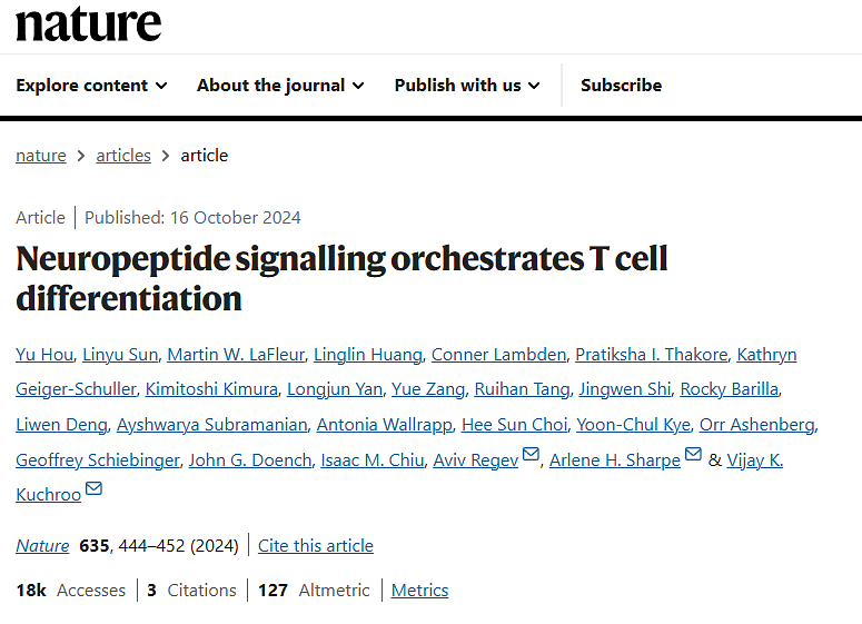 原文链接 Neuropeptide signalling orchestrates T cell differentiation | Nature