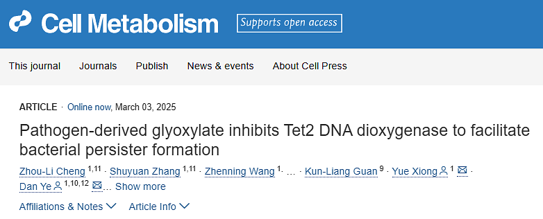 Pathogen-derived glyoxylate inhibits Tet2 DNA dioxygenase to facilitate bacterial persister formation - ScienceDirect
